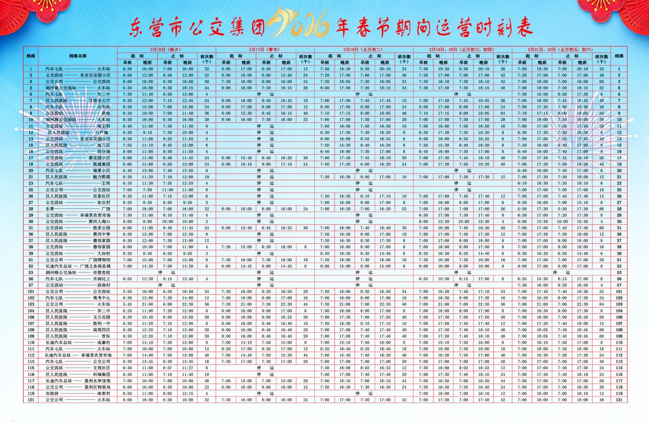· 市公交集團春節期間運營時間表,請查收!