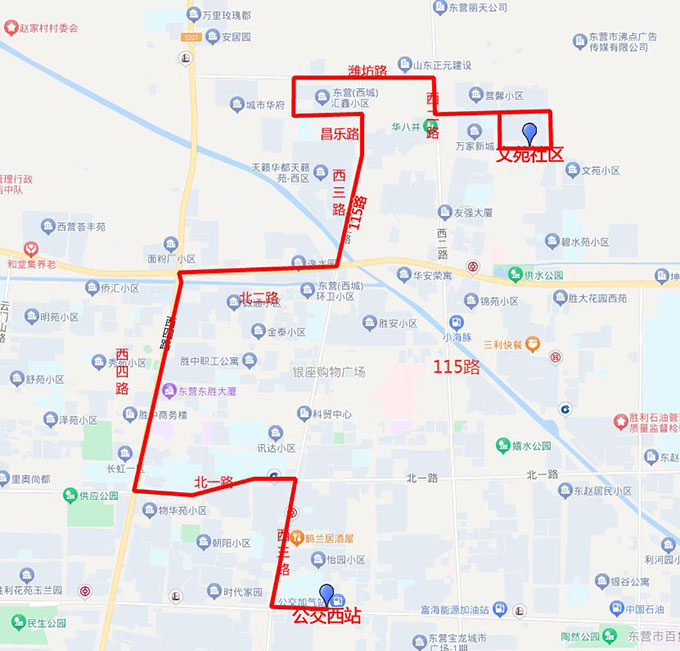 線路走向:下行自公交西站西始發(fā),經(jīng)黃河路、西三路、北一路、西四路、北二路、西三路、昌樂(lè)路、嵩山路、濰坊路、西二路、昌樂(lè)路、無(wú)名路、煙臺(tái)路到達(dá)終點(diǎn)站文苑社區(qū);上行自文苑社區(qū)始發(fā),經(jīng)煙臺(tái)路、文和路、昌樂(lè)路、西二路、濰坊路、嵩山路、昌樂(lè)路、西三路、北二路、西四路、北一路、西三路、黃河路到達(dá)終點(diǎn)站公交西站。