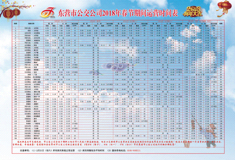 為答謝社會各界一直以來給予我市公交事業(yè)的關(guān)心和支持,東營市公交公司春節(jié)期間線路運行時刻表新鮮出爐,今年年三十、年初一、年初二市民乘坐市公交公司運行車輛全部免費。