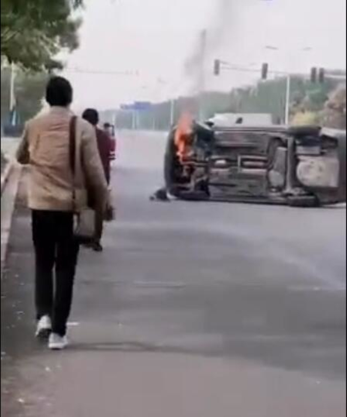 今天中午十二點半左右,在青島路上,一輛小轎車不知什么原因發(fā)生了側(cè)翻起火,火焰不斷向上躥,冒著濃濃黑煙。更令人揪心的是,當時車內(nèi)還有三個人(據(jù)說是一家三口)被困車中沒能出來,隨時都有被大火吞噬的危險。