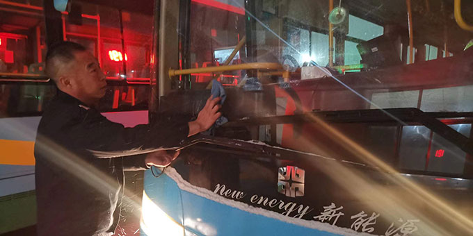 2021年12月24日,東營迎來降雪天氣。為保障市民正常出行,風雪無阻的東營公交人積極做好各項應對準備,加強車輛保養(yǎng)、清理積雪積冰,全體干部職工提前到崗到位,戰(zhàn)風雪,保出行!