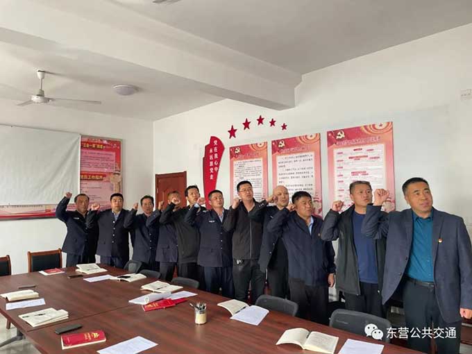 活動開始,汽車三隊(duì)支部書記帶領(lǐng)黨員重溫入黨誓詞。全體黨員面對鮮紅黨旗,堅定有力地舉起右拳,整齊劃一地宣讀入黨誓言,再一次感受入黨時的理想和信仰,感受對黨的熱愛、忠誠,感受黨員的責(zé)任、使命和榮光。