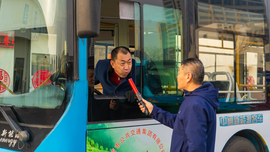 安全防線不放松。 場站入口處,“來,師傅,吹一下”——這句叮囑春節期間重復上千次。檢測后還有安全叮囑:“路口減速,平安第一”。他們用嚴謹筑牢安全底線。