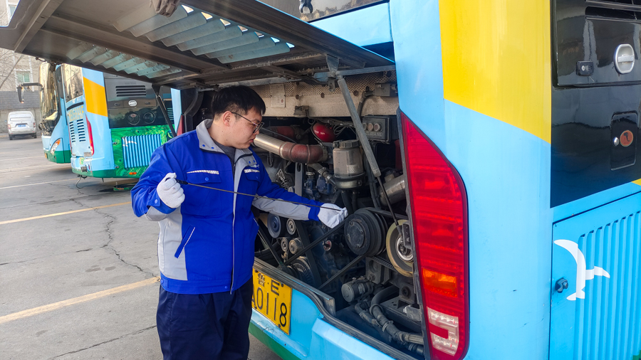 保修廠里保障忙。維修師傅們堅守崗位,對回場車輛進行細致保養,排查隱患、隨時準備應急搶修。充電工穿梭在場站,密切關注充電狀態,為新能源公交車“續航賦能”。他們用專業與責任,確保每一輛車滿電出發、安全上路,為節日運營保駕護航。