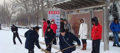汽車七隊職工到公交站點清掃積雪