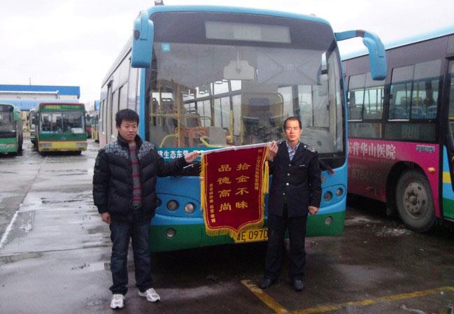 2010年12月13日上午,東營區(qū)龍居鎮(zhèn)麻灣村孫路、趙雪冒著紛紛揚(yáng)揚(yáng)的雪花來到市公交公司汽車三隊(duì),將一面寫有“拾金不昧、品德高尚”的錦旗送到車隊(duì)領(lǐng)導(dǎo)手中,對139路駕駛員孫明軍同志表示感謝,并對公交公司培養(yǎng)出這么好的員工表示敬意。