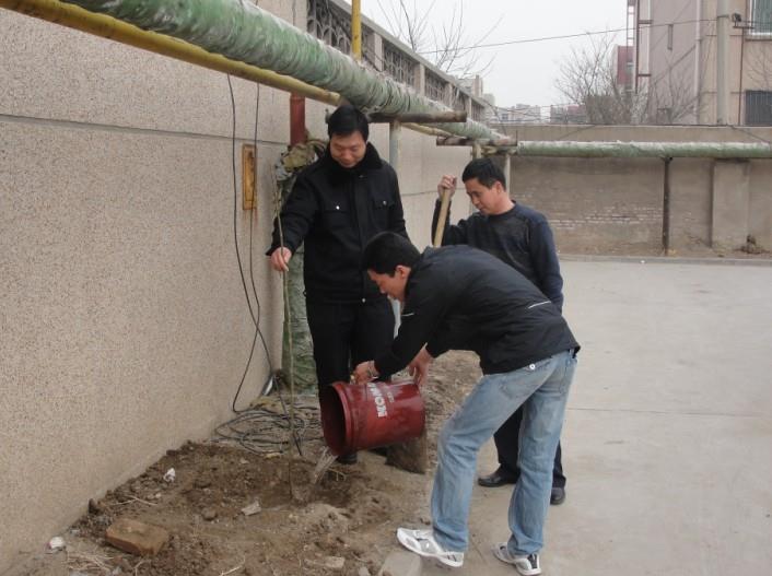 汽車三隊6個線路團隊、后勤團隊和保修廠團隊共同捐資購買了山楂樹、柿子樹、板栗樹和櫻桃樹共計28株,由團隊成員分別栽植在西站辦公樓后車場的東墻、北墻和西墻處。