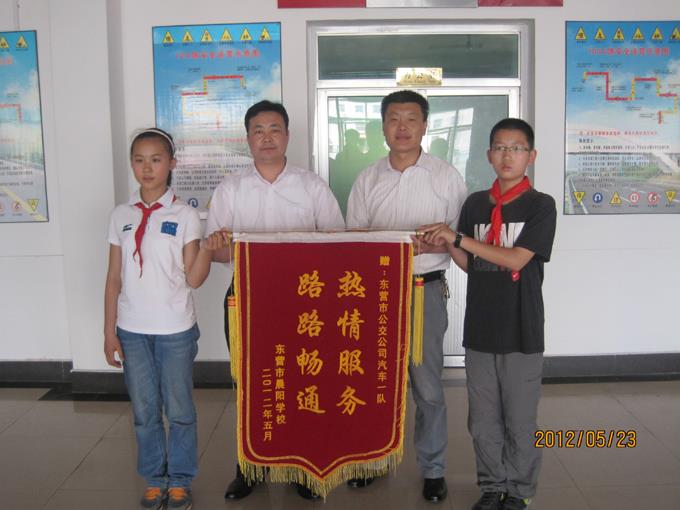 5月23日上午,市晨陽學(xué)校師生三人拿著一面寫有“熱情服務(wù)、路路暢通”的錦旗來到市公交公司汽車一隊,感謝車隊在5月17至18日為期兩天的旅游包車中,為晨陽學(xué)校兩千多名師生提供的熱情、周到、優(yōu)質(zhì)的服務(wù)。對近幾年公交服務(wù)質(zhì)量的不斷提升表示稱贊,并向公交廣大干部職工表達深深的敬意。