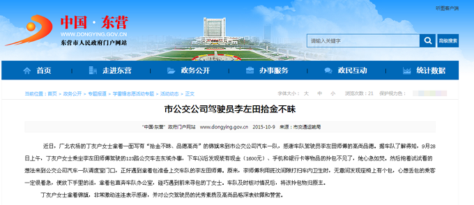 2015年10月9日東營市政府網站報道